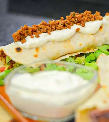Você conhece burrito? É uma fatia de pão bem fininha recheada com várias ingredientes. A massa do burrito é caseira, feita com farinha de trigo, água morna, manteiga e sal.